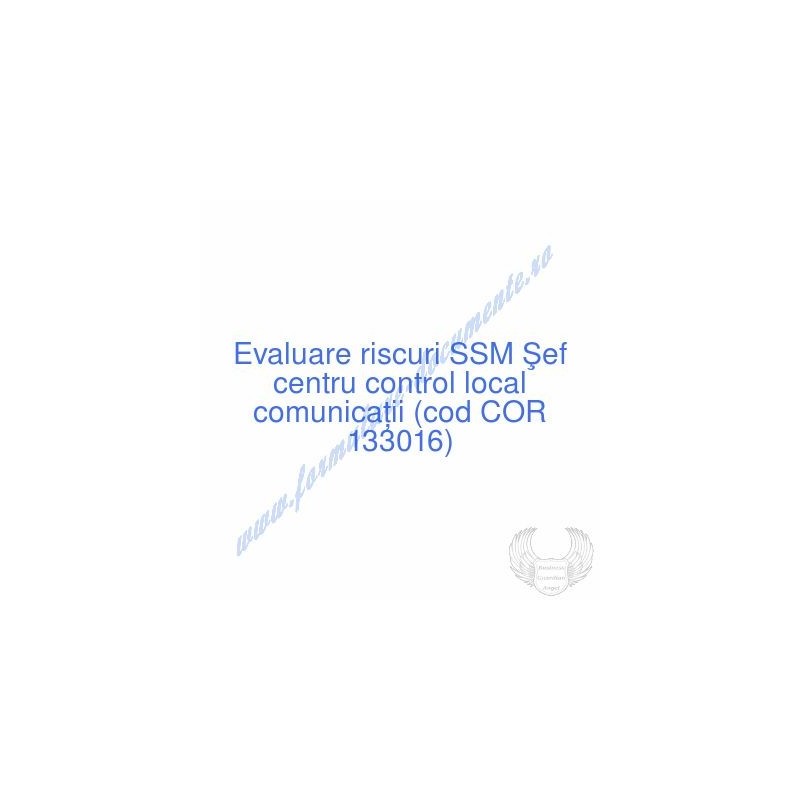 Aceste documente OBLIGATORII pentru ocupantul postului de Şef centru control local comunicaţii (cod COR 133016), sunt complet întocmite, respectând cerințele Codului muncii actualizat 2023, Legii securității și sănătății în muncă nr. 319/2006 (actualizată 2023), răspund tuturor cerințelor standardelor de calitate referitoare la management (ISO 9001/ ISO 14001/ ISO 22000/ SR OHSAS 18001:2008/ ISO 45001:2018 etc.). În vederea determinării riscurilor la care este expus angajatul pe funcția de Şef centru control local comunicaţii , consecințele maxime previzibile asupra acestuia și metodele de diminuare a lor am folosit metoda elaborată de I.N.C.D.P.M. București, care respectă toate rigorile legale și este unanim acceptată de inspectorii ITM și SSM.