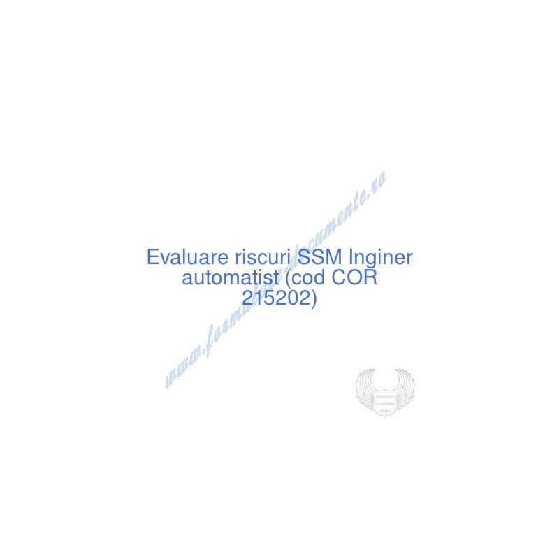 Aceste documente OBLIGATORII pentru ocupantul postului de Inginer automatist (cod COR 215202), sunt complet întocmite, respectând cerințele Codului muncii actualizat 2023, Legii securității și sănătății în muncă nr. 319/2006 (actualizată 2023), răspund tuturor cerințelor standardelor de calitate referitoare la management (ISO 9001/ ISO 14001/ ISO 22000/ SR OHSAS 18001:2008/ ISO 45001:2018 etc.). În vederea determinării riscurilor la care este expus angajatul pe funcția de Inginer automatist , consecințele maxime previzibile asupra acestuia și metodele de diminuare a lor am folosit metoda elaborată de I.N.C.D.P.M. București, care respectă toate rigorile legale și este unanim acceptată de inspectorii ITM și SSM.