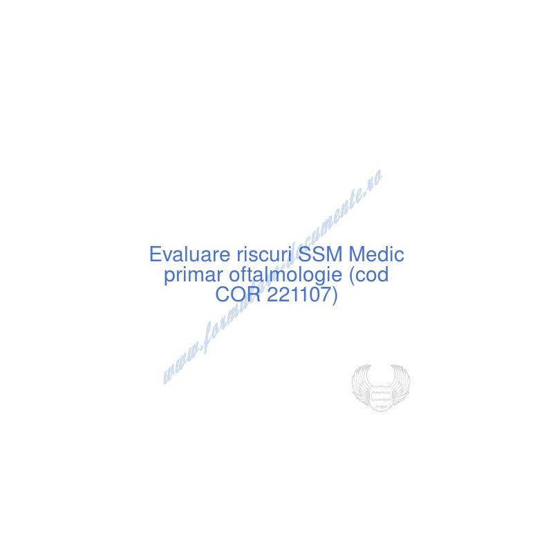 Evaluarea riscurilor de accidentare și îmbolnăvire profesională pentru Medic primar oftalmologie (cod COR 221107)