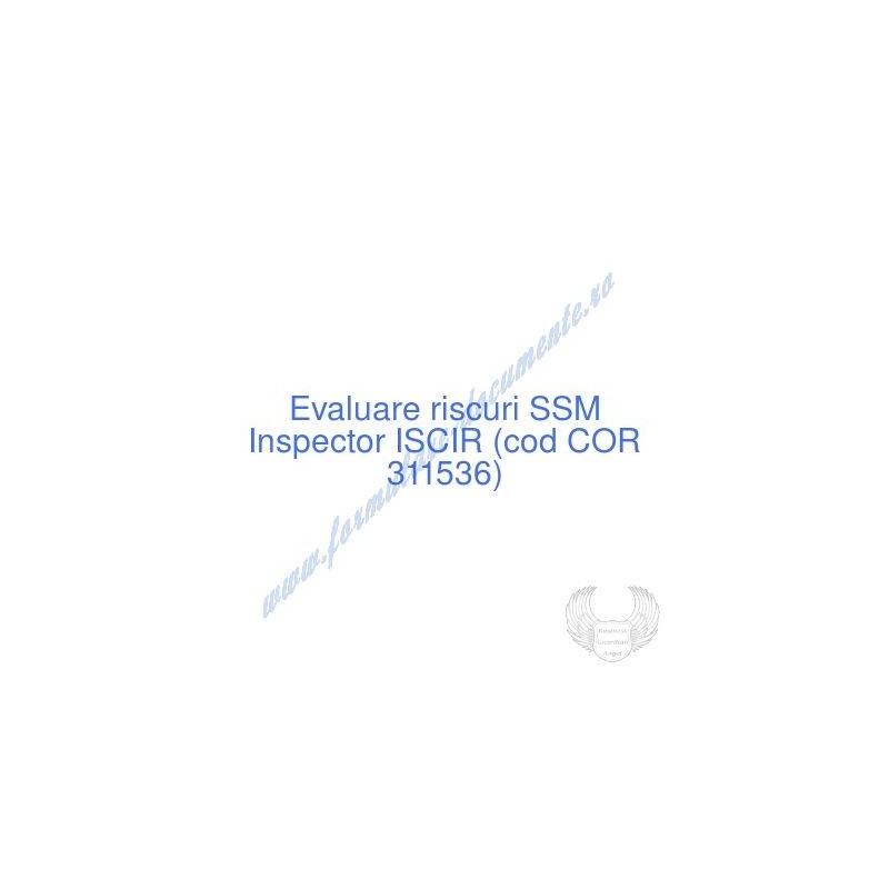 Aceste documente OBLIGATORII pentru ocupantul postului de Inspector ISCIR (cod COR 311536), sunt complet întocmite, respectând cerințele Codului muncii actualizat 2023, Legii securității și sănătății în muncă nr. 319/2006 (actualizată 2023), răspund tuturor cerințelor standardelor de calitate referitoare la management (ISO 9001/ ISO 14001/ ISO 22000/ SR OHSAS 18001:2008/ ISO 45001:2018 etc.). În vederea determinării riscurilor la care este expus angajatul pe funcția de Inspector ISCIR , consecințele maxime previzibile asupra acestuia și metodele de diminuare a lor am folosit metoda elaborată de I.N.C.D.P.M. București, care respectă toate rigorile legale și este unanim acceptată de inspectorii ITM și SSM.