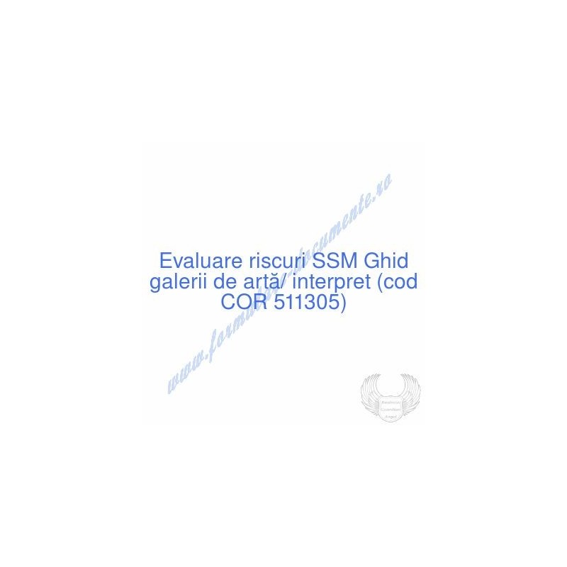 Aceste documente OBLIGATORII pentru ocupantul postului de Ghid galerii de artă/ interpret (cod COR 511305), sunt complet întocmite, respectând cerințele Codului muncii actualizat 2023, Legii securității și sănătății în muncă nr. 319/2006 (actualizată 2023), răspund tuturor cerințelor standardelor de calitate referitoare la management (ISO 9001/ ISO 14001/ ISO 22000/ SR OHSAS 18001:2008/ ISO 45001:2018 etc.). În vederea determinării riscurilor la care este expus angajatul pe funcția de Ghid galerii de artă/ interpret , consecințele maxime previzibile asupra acestuia și metodele de diminuare a lor am folosit metoda elaborată de I.N.C.D.P.M. București, care respectă toate rigorile legale și este unanim acceptată de inspectorii ITM și SSM.