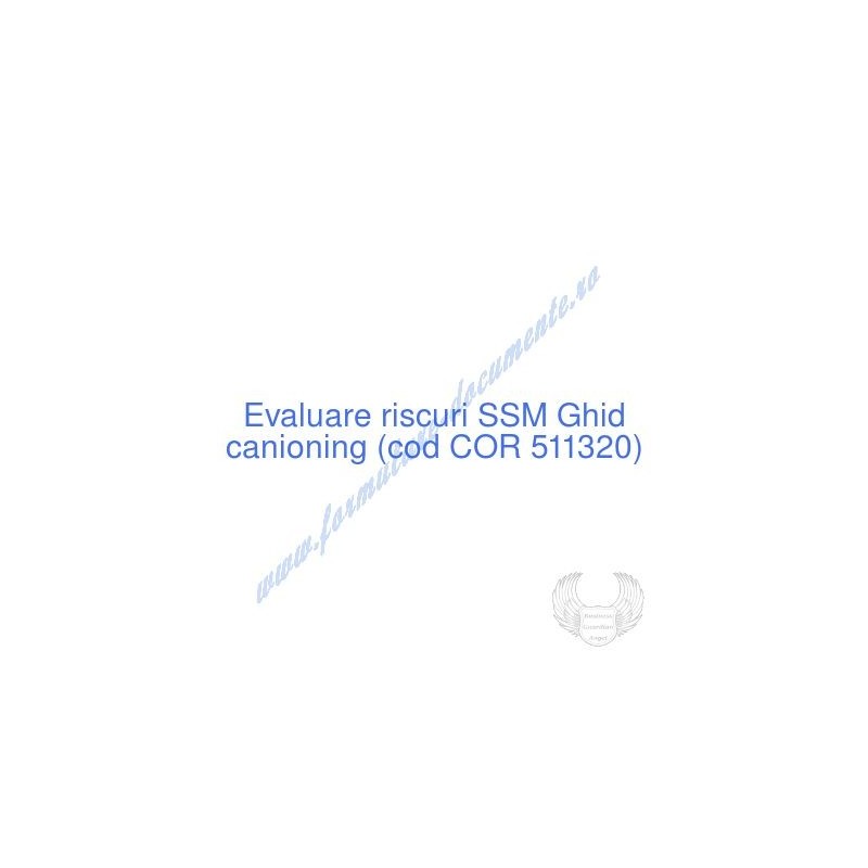 Aceste documente OBLIGATORII pentru ocupantul postului de Ghid canioning (cod COR 511320), sunt complet întocmite, respectând cerințele Codului muncii actualizat 2023, Legii securității și sănătății în muncă nr. 319/2006 (actualizată 2023), răspund tuturor cerințelor standardelor de calitate referitoare la management (ISO 9001/ ISO 14001/ ISO 22000/ SR OHSAS 18001:2008/ ISO 45001:2018 etc.). În vederea determinării riscurilor la care este expus angajatul pe funcția de Ghid canioning , consecințele maxime previzibile asupra acestuia și metodele de diminuare a lor am folosit metoda elaborată de I.N.C.D.P.M. București, care respectă toate rigorile legale și este unanim acceptată de inspectorii ITM și SSM.