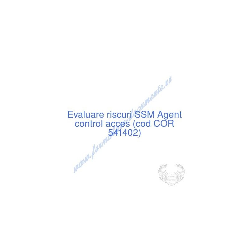 Aceste documente OBLIGATORII pentru ocupantul postului de Agent control acces (cod COR 541402), sunt complet întocmite, respectând cerințele Codului muncii actualizat 2023, Legii securității și sănătății în muncă nr. 319/2006 (actualizată 2023), răspund tuturor cerințelor standardelor de calitate referitoare la management (ISO 9001/ ISO 14001/ ISO 22000/ SR OHSAS 18001:2008/ ISO 45001:2018 etc.). În vederea determinării riscurilor la care este expus angajatul pe funcția de Agent control acces , consecințele maxime previzibile asupra acestuia și metodele de diminuare a lor am folosit metoda elaborată de I.N.C.D.P.M. București, care respectă toate rigorile legale și este unanim acceptată de inspectorii ITM și SSM.