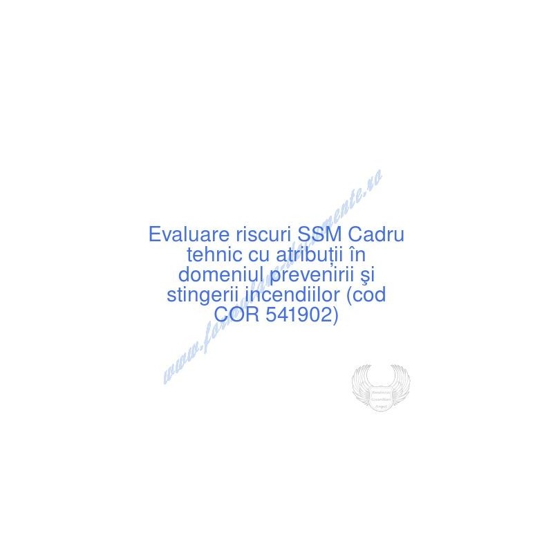 Aceste documente OBLIGATORII pentru ocupantul postului de Cadru tehnic cu atribuţii în domeniul prevenirii şi stingerii incendiilor (cod COR 541902), sunt complet întocmite, respectând cerințele Codului muncii actualizat 2023, Legii securității și sănătății în muncă nr. 319/2006 (actualizată 2023), răspund tuturor cerințelor standardelor de calitate referitoare la management (ISO 9001/ ISO 14001/ ISO 22000/ SR OHSAS 18001:2008/ ISO 45001:2018 etc.). În vederea determinării riscurilor la care este expus angajatul pe funcția de Cadru tehnic cu atribuţii în domeniul prevenirii şi stingerii incendiilor , consecințele maxime previzibile asupra acestuia și metodele de diminuare a lor am folosit metoda elaborată de I.N.C.D.P.M. București, care respectă toate rigorile legale și este unanim acceptată de inspectorii ITM și SSM.