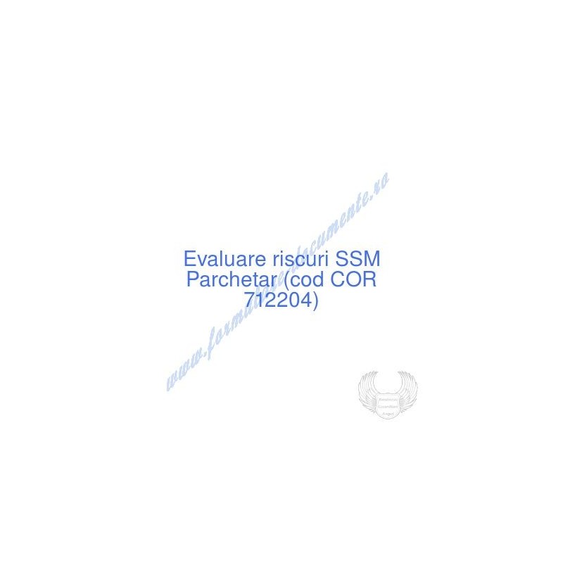 Aceste documente OBLIGATORII pentru ocupantul postului de Parchetar (cod COR 712204), sunt complet întocmite, respectând cerințele Codului muncii actualizat 2023, Legii securității și sănătății în muncă nr. 319/2006 (actualizată 2023), răspund tuturor cerințelor standardelor de calitate referitoare la management (ISO 9001/ ISO 14001/ ISO 22000/ SR OHSAS 18001:2008/ ISO 45001:2018 etc.). În vederea determinării riscurilor la care este expus angajatul pe funcția de Parchetar , consecințele maxime previzibile asupra acestuia și metodele de diminuare a lor am folosit metoda elaborată de I.N.C.D.P.M. București, care respectă toate rigorile legale și este unanim acceptată de inspectorii ITM și SSM.