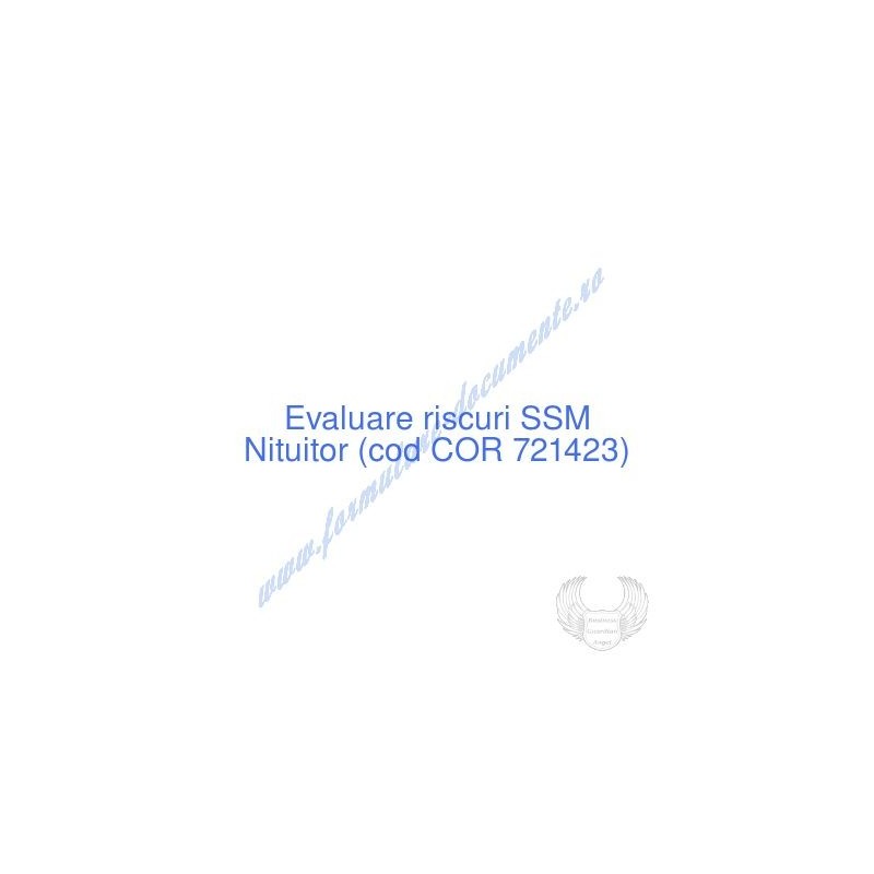 Aceste documente OBLIGATORII pentru ocupantul postului de Nituitor (cod COR 721423), sunt complet întocmite, respectând cerințele Codului muncii actualizat 2023, Legii securității și sănătății în muncă nr. 319/2006 (actualizată 2023), răspund tuturor cerințelor standardelor de calitate referitoare la management (ISO 9001/ ISO 14001/ ISO 22000/ SR OHSAS 18001:2008/ ISO 45001:2018 etc.). În vederea determinării riscurilor la care este expus angajatul pe funcția de Nituitor , consecințele maxime previzibile asupra acestuia și metodele de diminuare a lor am folosit metoda elaborată de I.N.C.D.P.M. București, care respectă toate rigorile legale și este unanim acceptată de inspectorii ITM și SSM.