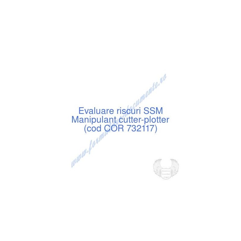 Aceste documente OBLIGATORII pentru ocupantul postului de Manipulant cutter-plotter (cod COR 732117), sunt complet întocmite, respectând cerințele Codului muncii actualizat 2023, Legii securității și sănătății în muncă nr. 319/2006 (actualizată 2023), răspund tuturor cerințelor standardelor de calitate referitoare la management (ISO 9001/ ISO 14001/ ISO 22000/ SR OHSAS 18001:2008/ ISO 45001:2018 etc.). În vederea determinării riscurilor la care este expus angajatul pe funcția de Manipulant cutter-plotter , consecințele maxime previzibile asupra acestuia și metodele de diminuare a lor am folosit metoda elaborată de I.N.C.D.P.M. București, care respectă toate rigorile legale și este unanim acceptată de inspectorii ITM și SSM.