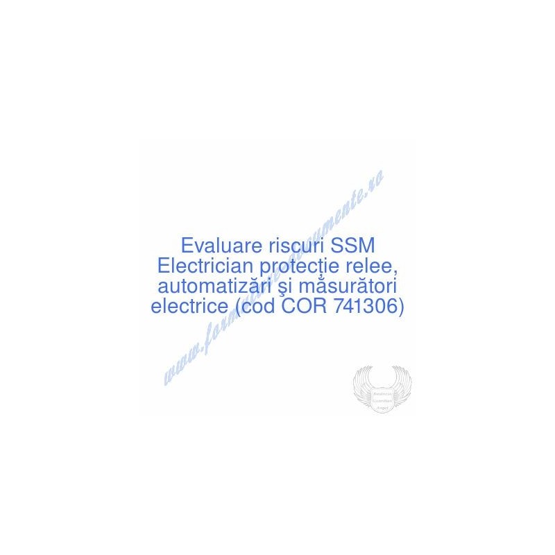 Aceste documente OBLIGATORII pentru ocupantul postului de Electrician protecţie relee, automatizări şi măsurători electrice (cod COR 741306), sunt complet întocmite, respectând cerințele Codului muncii actualizat 2023, Legii securității și sănătății în muncă nr. 319/2006 (actualizată 2023), răspund tuturor cerințelor standardelor de calitate referitoare la management (ISO 9001/ ISO 14001/ ISO 22000/ SR OHSAS 18001:2008/ ISO 45001:2018 etc.). În vederea determinării riscurilor la care este expus angajatul pe funcția de Electrician protecţie relee, automatizări şi măsurători electrice , consecințele maxime previzibile asupra acestuia și metodele de diminuare a lor am folosit metoda elaborată de I.N.C.D.P.M. București, care respectă toate rigorile legale și este unanim acceptată de inspectorii ITM și SSM.