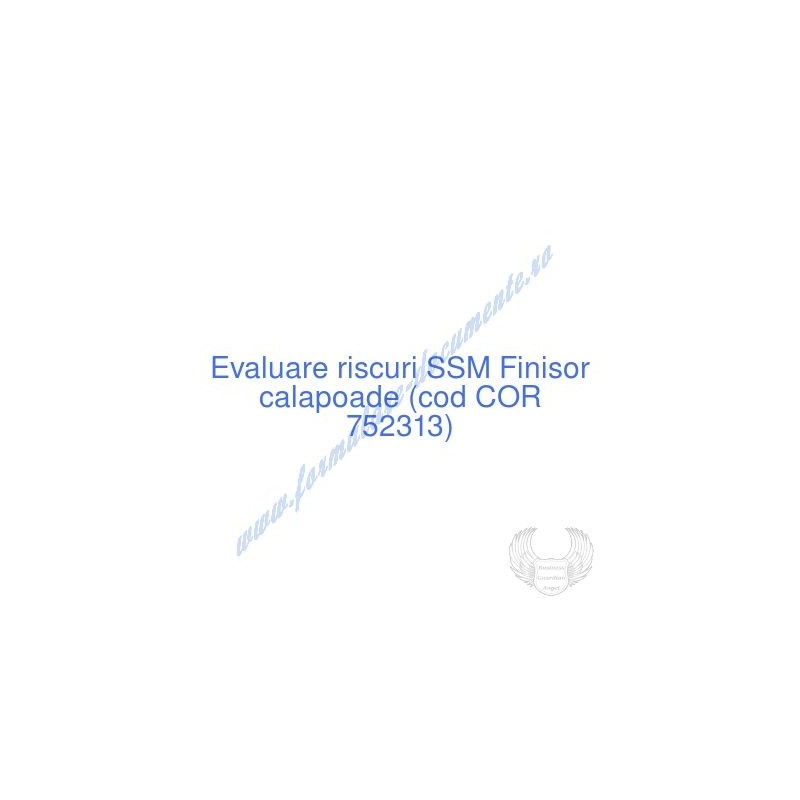 Aceste documente OBLIGATORII pentru ocupantul postului de Finisor calapoade (cod COR 752313), sunt complet întocmite, respectând cerințele Codului muncii actualizat 2023, Legii securității și sănătății în muncă nr. 319/2006 (actualizată 2023), răspund tuturor cerințelor standardelor de calitate referitoare la management (ISO 9001/ ISO 14001/ ISO 22000/ SR OHSAS 18001:2008/ ISO 45001:2018 etc.). În vederea determinării riscurilor la care este expus angajatul pe funcția de Finisor calapoade , consecințele maxime previzibile asupra acestuia și metodele de diminuare a lor am folosit metoda elaborată de I.N.C.D.P.M. București, care respectă toate rigorile legale și este unanim acceptată de inspectorii ITM și SSM.