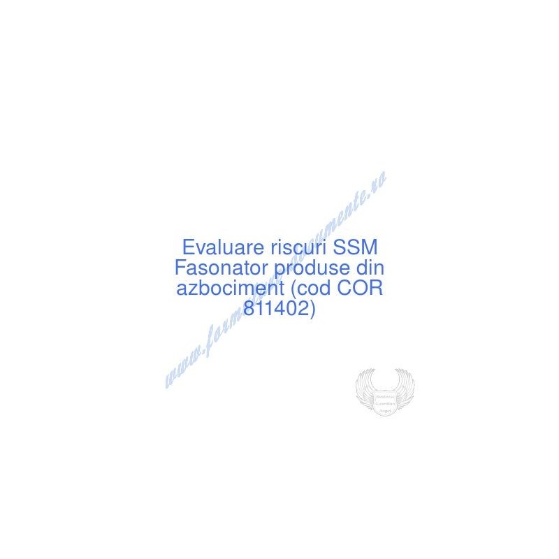 Aceste documente OBLIGATORII pentru ocupantul postului de Fasonator produse din azbociment (cod COR 811402), sunt complet întocmite, respectând cerințele Codului muncii actualizat 2023, Legii securității și sănătății în muncă nr. 319/2006 (actualizată 2023), răspund tuturor cerințelor standardelor de calitate referitoare la management (ISO 9001/ ISO 14001/ ISO 22000/ SR OHSAS 18001:2008/ ISO 45001:2018 etc.). În vederea determinării riscurilor la care este expus angajatul pe funcția de Fasonator produse din azbociment , consecințele maxime previzibile asupra acestuia și metodele de diminuare a lor am folosit metoda elaborată de I.N.C.D.P.M. București, care respectă toate rigorile legale și este unanim acceptată de inspectorii ITM și SSM.