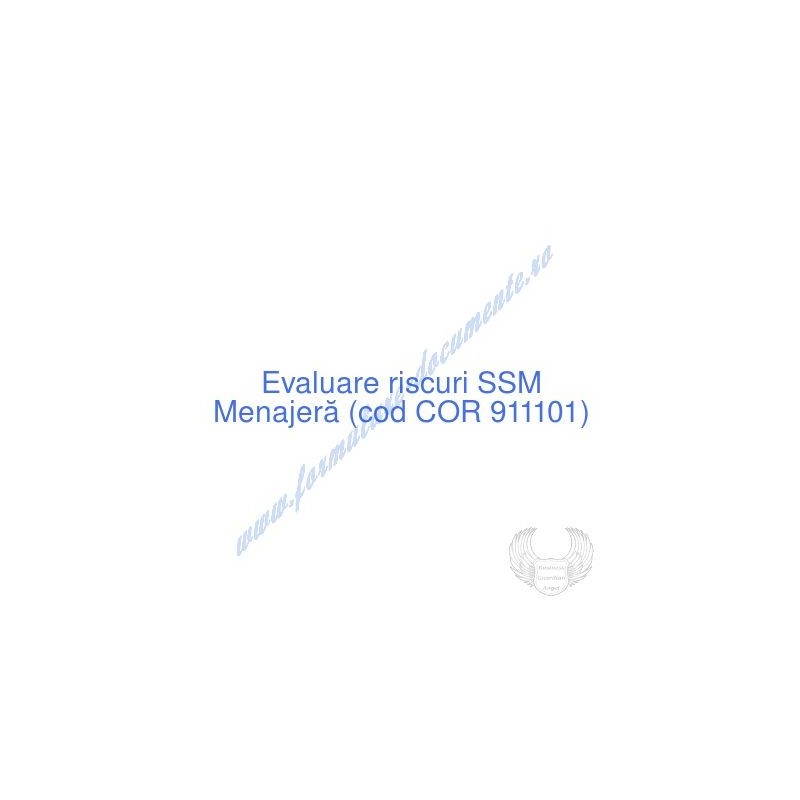 Aceste documente OBLIGATORII pentru ocupantul postului de Menajeră (cod COR 911101), sunt complet întocmite, respectând cerințele Codului muncii actualizat 2023, Legii securității și sănătății în muncă nr. 319/2006 (actualizată 2023), răspund tuturor cerințelor standardelor de calitate referitoare la management (ISO 9001/ ISO 14001/ ISO 22000/ SR OHSAS 18001:2008/ ISO 45001:2018 etc.). În vederea determinării riscurilor la care este expus angajatul pe funcția de Menajeră , consecințele maxime previzibile asupra acestuia și metodele de diminuare a lor am folosit metoda elaborată de I.N.C.D.P.M. București, care respectă toate rigorile legale și este unanim acceptată de inspectorii ITM și SSM.