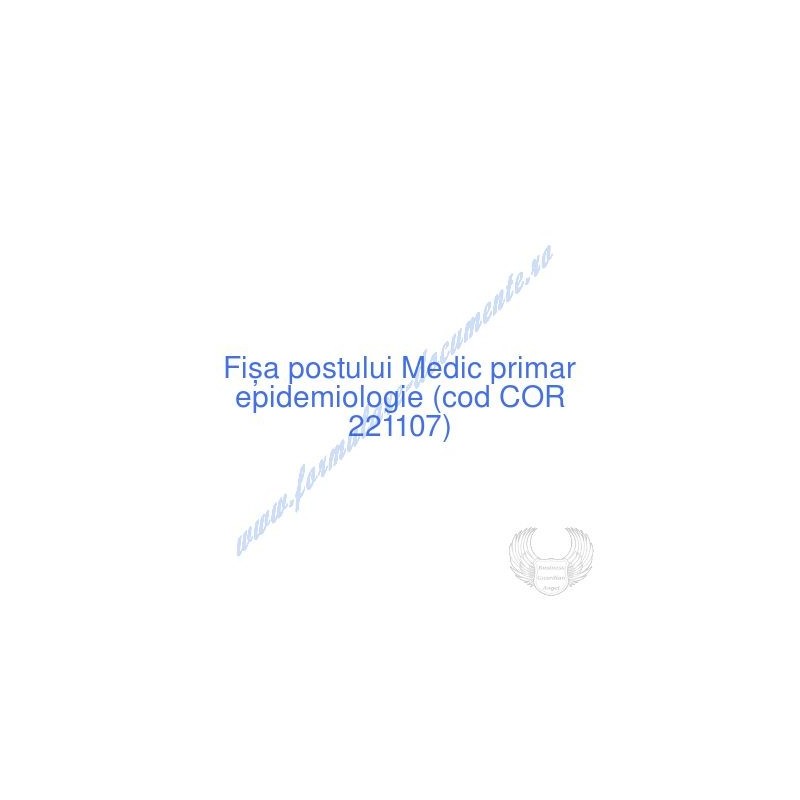 Aceste documente OBLIGATORII pentru ocupantul postului de Medic primar epidemiologie (cod COR 221107), sunt complet întocmite, respectând cerințele Codului muncii actualizat 2023, Legii securității și sănătății în muncă nr. 319/2006 (actualizată 2023), răspund tuturor cerințelor standardelor de calitate referitoare la management (ISO 9001/ ISO 14001/ ISO 22000 etc.). Aceste documente îndeplinesc cu succes rolul de a ghida salariatul angajat pe funcția de Medic primar epidemiologie cu privire la atribuțiile și responsabilitățile sale și respectă rigorile legale verificate de inspectorii ITM și SSM.