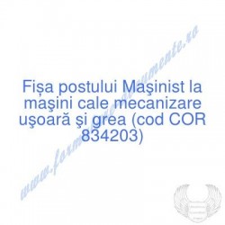 Aceste documente OBLIGATORII pentru ocupantul postului de Maşinist la maşini cale mecanizare uşoară şi grea (cod COR 834203), sunt complet întocmite, respectând cerințele Codului muncii actualizat 2023, Legii securității și sănătății în muncă nr. 319/2006 (actualizată 2023), răspund tuturor cerințelor standardelor de calitate referitoare la management (ISO 9001/ ISO 14001/ ISO 22000 etc.). Aceste documente îndeplinesc cu succes rolul de a ghida salariatul angajat pe funcția de Maşinist la maşini cale mecanizare uşoară şi grea cu privire la atribuțiile și responsabilitățile sale și respectă rigorile legale verificate de inspectorii ITM și SSM.