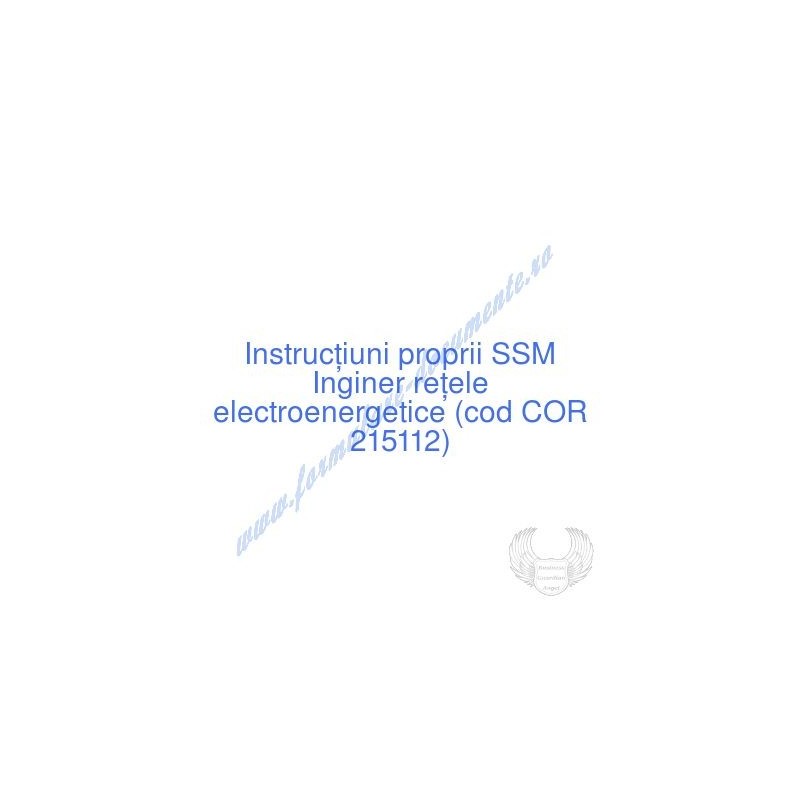 Aceste documente OBLIGATORII pentru ocupantul postului de Inginer reţele electroenergetice (cod COR 215112), sunt complet întocmite, respectând cerințele Codului muncii actualizat 2023, Legii securității și sănătății în muncă nr. 319/2006 (actualizată 2023), H.G. 1425/2006 (actualizată 2023) și răspund tuturor cerințelor standardelor de calitate referitoare la management (ISO 9001/ ISO 14001/ ISO 22000/ SR OHSAS 18001:2008/ ISO 45001:2018 etc.). Cuprinsul IPSSM pentru instruirea angajatului pe funcția de Inginer reţele electroenergetice :