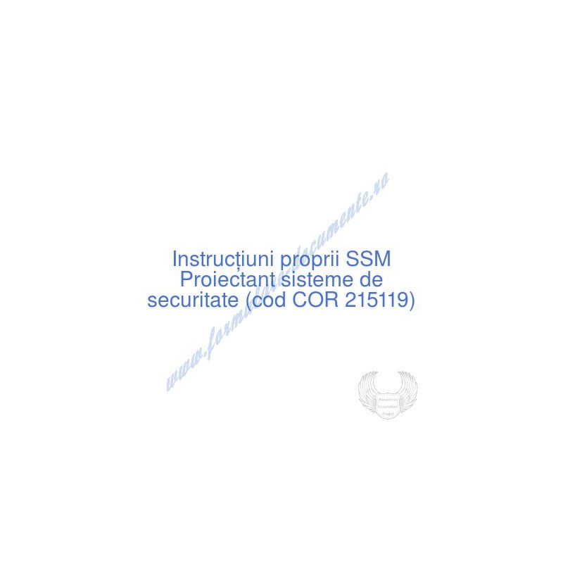 Aceste documente OBLIGATORII pentru ocupantul postului de Proiectant sisteme de securitate (cod COR 215119), sunt complet întocmite, respectând cerințele Codului muncii actualizat 2023, Legii securității și sănătății în muncă nr. 319/2006 (actualizată 2023), H.G. 1425/2006 (actualizată 2023) și răspund tuturor cerințelor standardelor de calitate referitoare la management (ISO 9001/ ISO 14001/ ISO 22000/ SR OHSAS 18001:2008/ ISO 45001:2018 etc.). Cuprinsul IPSSM pentru instruirea angajatului pe funcția de Proiectant sisteme de securitate :