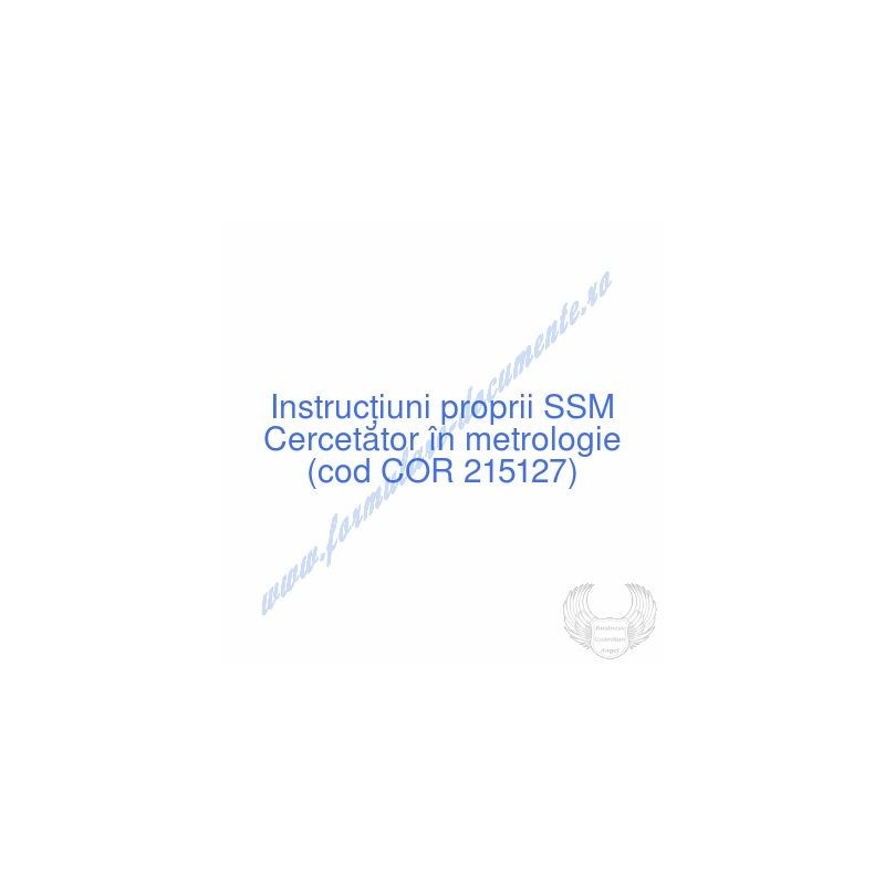 Aceste documente OBLIGATORII pentru ocupantul postului de Cercetător în metrologie (cod COR 215127), sunt complet întocmite, respectând cerințele Codului muncii actualizat 2023, Legii securității și sănătății în muncă nr. 319/2006 (actualizată 2023), H.G. 1425/2006 (actualizată 2023) și răspund tuturor cerințelor standardelor de calitate referitoare la management (ISO 9001/ ISO 14001/ ISO 22000/ SR OHSAS 18001:2008/ ISO 45001:2018 etc.). Cuprinsul IPSSM pentru instruirea angajatului pe funcția de Cercetător în metrologie :