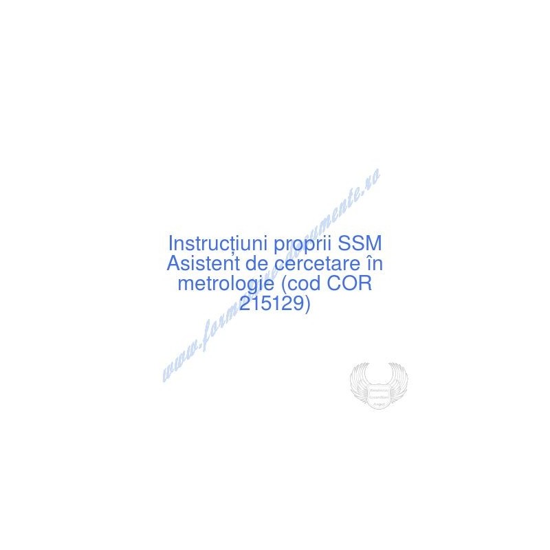 Aceste documente OBLIGATORII pentru ocupantul postului de Asistent de cercetare în metrologie (cod COR 215129), sunt complet întocmite, respectând cerințele Codului muncii actualizat 2023, Legii securității și sănătății în muncă nr. 319/2006 (actualizată 2023), H.G. 1425/2006 (actualizată 2023) și răspund tuturor cerințelor standardelor de calitate referitoare la management (ISO 9001/ ISO 14001/ ISO 22000/ SR OHSAS 18001:2008/ ISO 45001:2018 etc.). Cuprinsul IPSSM pentru instruirea angajatului pe funcția de Asistent de cercetare în metrologie :