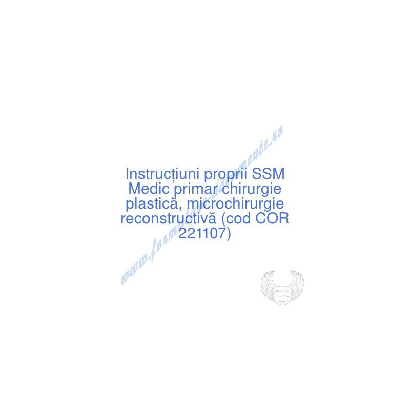Instrucţiuni proprii de securitate și sănătate în muncă pentru Medic primar chirurgie plastică, microchirurgie reconstructivă (cod COR 221107)