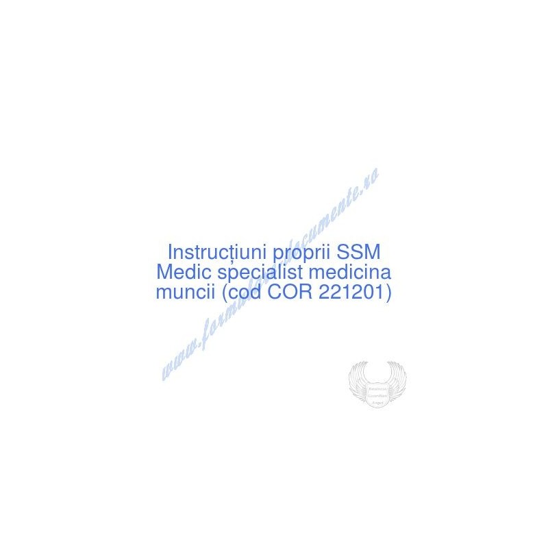 Aceste documente OBLIGATORII pentru ocupantul postului de Medic specialist medicina muncii (cod COR 221201), sunt complet întocmite, respectând cerințele Codului muncii actualizat 2023, Legii securității și sănătății în muncă nr. 319/2006 (actualizată 2023), H.G. 1425/2006 (actualizată 2023) și răspund tuturor cerințelor standardelor de calitate referitoare la management (ISO 9001/ ISO 14001/ ISO 22000/ SR OHSAS 18001:2008/ ISO 45001:2018 etc.). Cuprinsul IPSSM pentru instruirea angajatului pe funcția de Medic specialist medicina muncii :