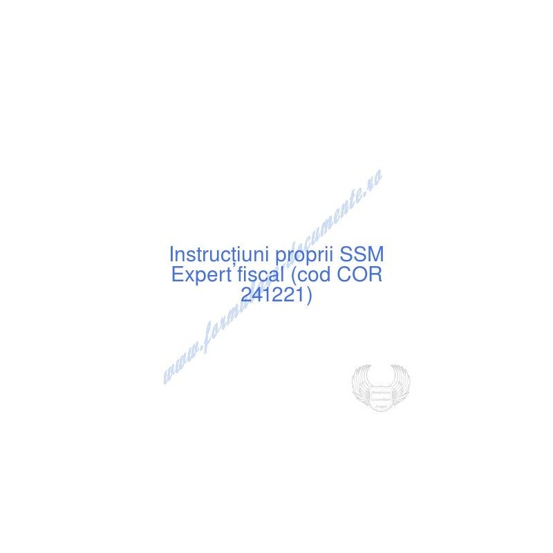 Aceste documente OBLIGATORII pentru ocupantul postului de Expert fiscal (cod COR 241221), sunt complet întocmite, respectând cerințele Codului muncii actualizat 2023, Legii securității și sănătății în muncă nr. 319/2006 (actualizată 2023), H.G. 1425/2006 (actualizată 2023) și răspund tuturor cerințelor standardelor de calitate referitoare la management (ISO 9001/ ISO 14001/ ISO 22000/ SR OHSAS 18001:2008/ ISO 45001:2018 etc.). Cuprinsul IPSSM pentru instruirea angajatului pe funcția de Expert fiscal :