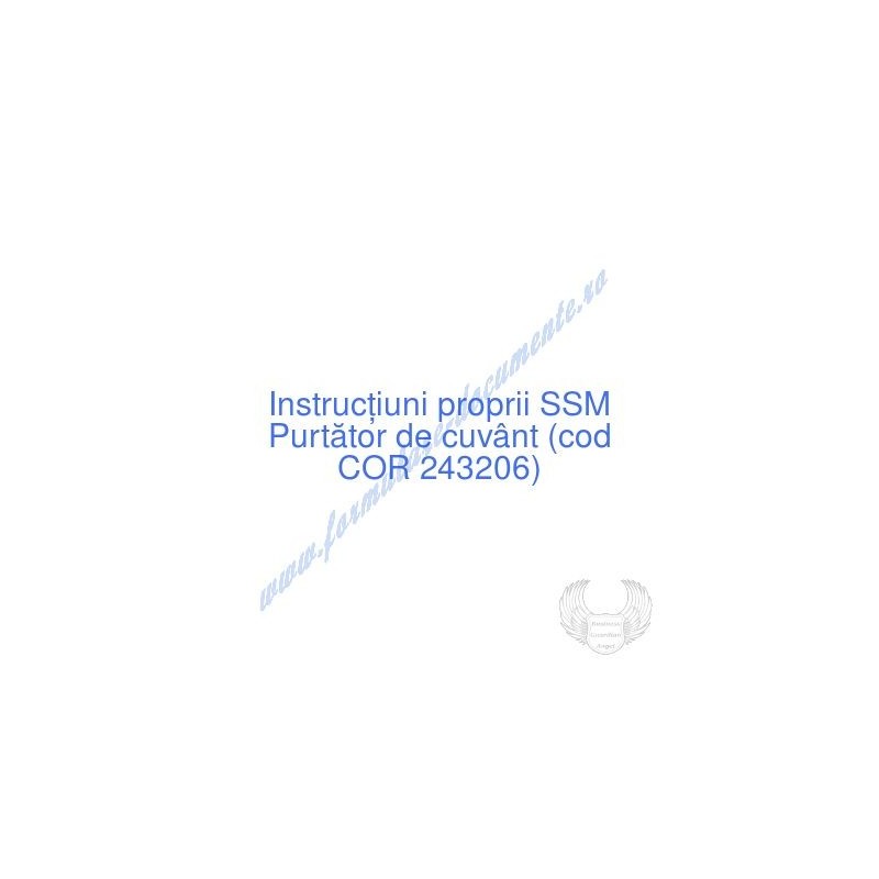 Aceste documente OBLIGATORII pentru ocupantul postului de Purtător de cuvânt (cod COR 243206), sunt complet întocmite, respectând cerințele Codului muncii actualizat 2023, Legii securității și sănătății în muncă nr. 319/2006 (actualizată 2023), H.G. 1425/2006 (actualizată 2023) și răspund tuturor cerințelor standardelor de calitate referitoare la management (ISO 9001/ ISO 14001/ ISO 22000/ SR OHSAS 18001:2008/ ISO 45001:2018 etc.). Cuprinsul IPSSM pentru instruirea angajatului pe funcția de Purtător de cuvânt :