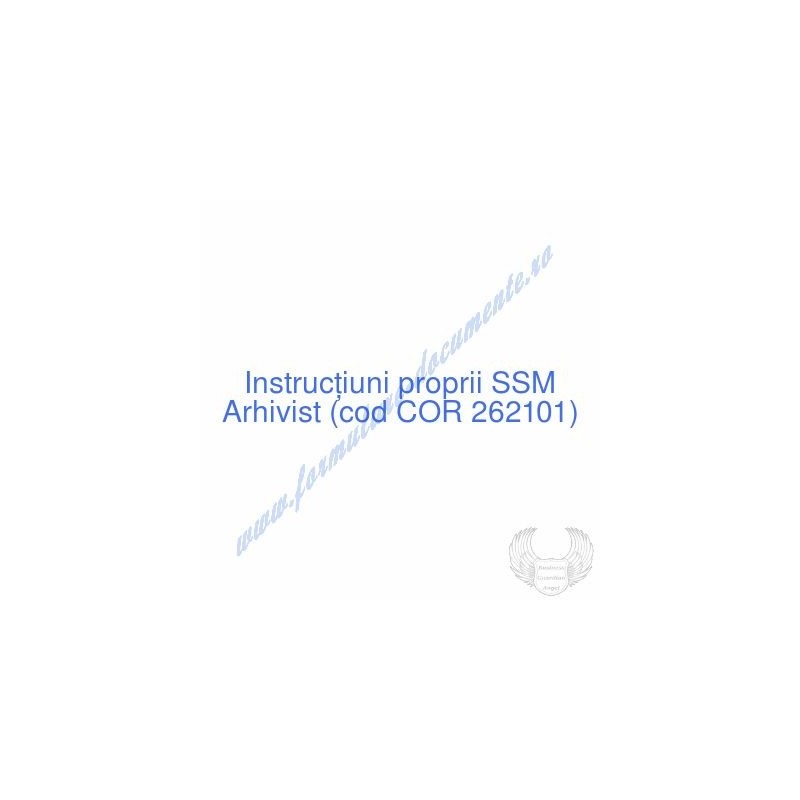 Aceste documente OBLIGATORII pentru ocupantul postului de Arhivist (cod COR 262101), sunt complet întocmite, respectând cerințele Codului muncii actualizat 2023, Legii securității și sănătății în muncă nr. 319/2006 (actualizată 2023), H.G. 1425/2006 (actualizată 2023) și răspund tuturor cerințelor standardelor de calitate referitoare la management (ISO 9001/ ISO 14001/ ISO 22000/ SR OHSAS 18001:2008/ ISO 45001:2018 etc.). Cuprinsul IPSSM pentru instruirea angajatului pe funcția de Arhivist :