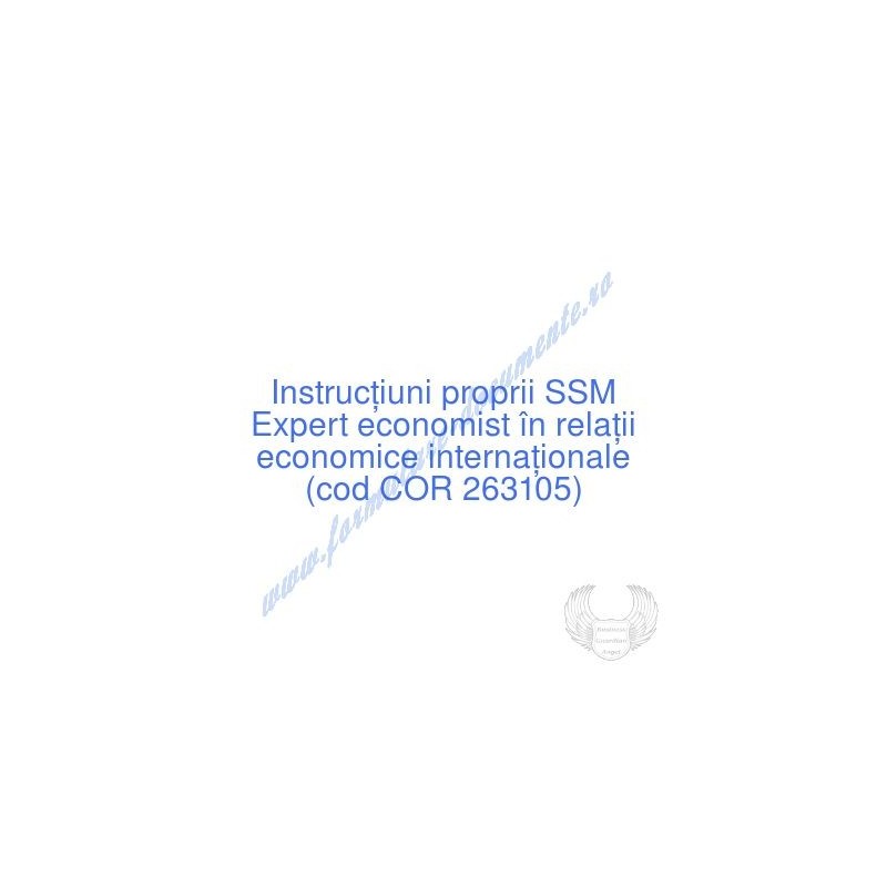 Aceste documente OBLIGATORII pentru ocupantul postului de Expert economist în relaţii economice internaţionale (cod COR 263105), sunt complet întocmite, respectând cerințele Codului muncii actualizat 2023, Legii securității și sănătății în muncă nr. 319/2006 (actualizată 2023), H.G. 1425/2006 (actualizată 2023) și răspund tuturor cerințelor standardelor de calitate referitoare la management (ISO 9001/ ISO 14001/ ISO 22000/ SR OHSAS 18001:2008/ ISO 45001:2018 etc.). Cuprinsul IPSSM pentru instruirea angajatului pe funcția de Expert economist în relaţii economice internaţionale :