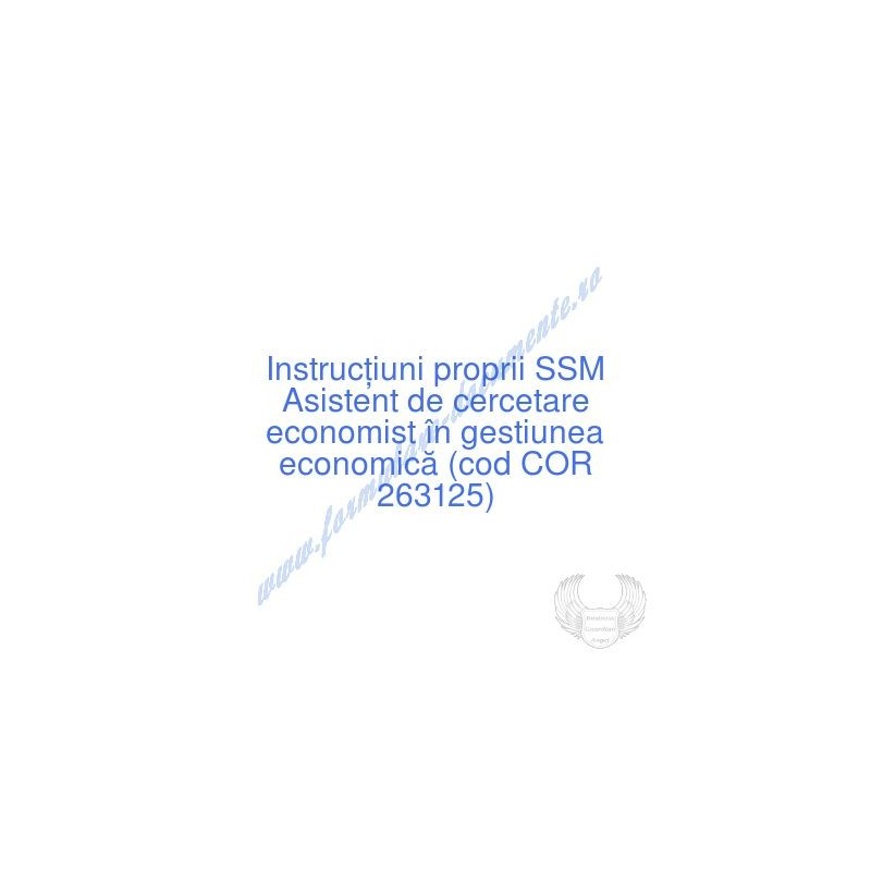 Aceste documente OBLIGATORII pentru ocupantul postului de Asistent de cercetare economist în gestiunea economică (cod COR 263125), sunt complet întocmite, respectând cerințele Codului muncii actualizat 2023, Legii securității și sănătății în muncă nr. 319/2006 (actualizată 2023), H.G. 1425/2006 (actualizată 2023) și răspund tuturor cerințelor standardelor de calitate referitoare la management (ISO 9001/ ISO 14001/ ISO 22000/ SR OHSAS 18001:2008/ ISO 45001:2018 etc.). Cuprinsul IPSSM pentru instruirea angajatului pe funcția de Asistent de cercetare economist în gestiunea economică :