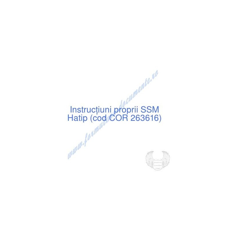 Aceste documente OBLIGATORII pentru ocupantul postului de Hatip (cod COR 263616), sunt complet întocmite, respectând cerințele Codului muncii actualizat 2023, Legii securității și sănătății în muncă nr. 319/2006 (actualizată 2023), H.G. 1425/2006 (actualizată 2023) și răspund tuturor cerințelor standardelor de calitate referitoare la management (ISO 9001/ ISO 14001/ ISO 22000/ SR OHSAS 18001:2008/ ISO 45001:2018 etc.). Cuprinsul IPSSM pentru instruirea angajatului pe funcția de Hatip :