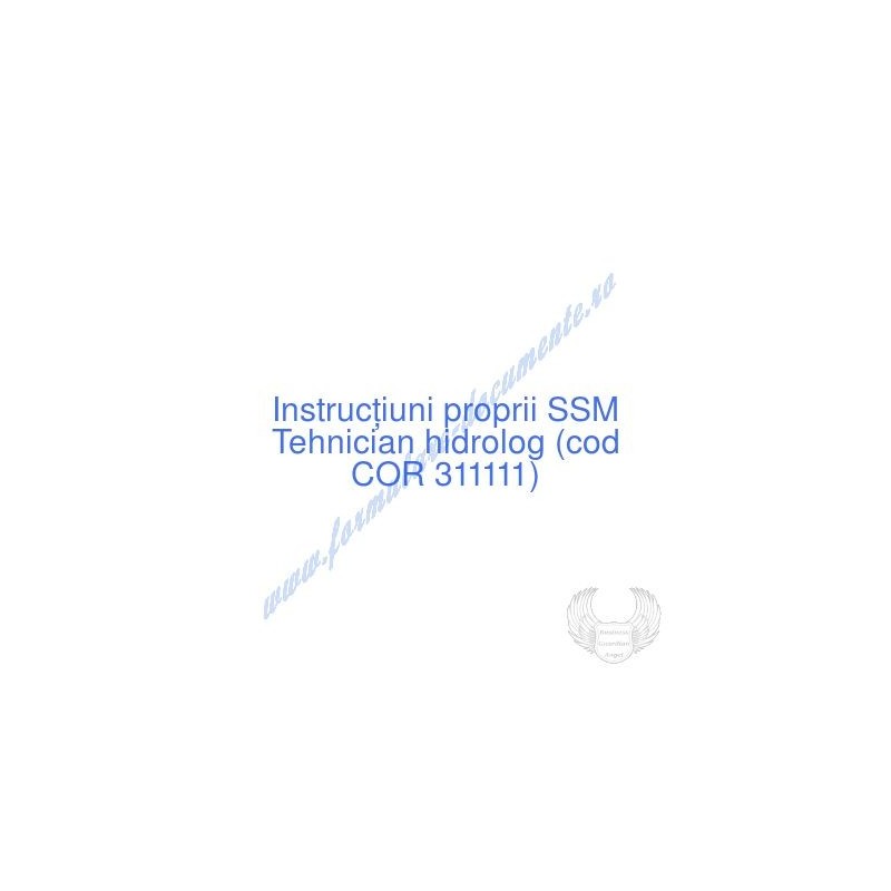 Aceste documente OBLIGATORII pentru ocupantul postului de Tehnician hidrolog (cod COR 311111), sunt complet întocmite, respectând cerințele Codului muncii actualizat 2023, Legii securității și sănătății în muncă nr. 319/2006 (actualizată 2023), H.G. 1425/2006 (actualizată 2023) și răspund tuturor cerințelor standardelor de calitate referitoare la management (ISO 9001/ ISO 14001/ ISO 22000/ SR OHSAS 18001:2008/ ISO 45001:2018 etc.). Cuprinsul IPSSM pentru instruirea angajatului pe funcția de Tehnician hidrolog :