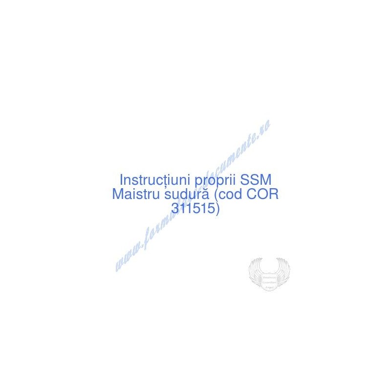 Aceste documente OBLIGATORII pentru ocupantul postului de Maistru sudură (cod COR 311515), sunt complet întocmite, respectând cerințele Codului muncii actualizat 2023, Legii securității și sănătății în muncă nr. 319/2006 (actualizată 2023), H.G. 1425/2006 (actualizată 2023) și răspund tuturor cerințelor standardelor de calitate referitoare la management (ISO 9001/ ISO 14001/ ISO 22000/ SR OHSAS 18001:2008/ ISO 45001:2018 etc.). Cuprinsul IPSSM pentru instruirea angajatului pe funcția de Maistru sudură :