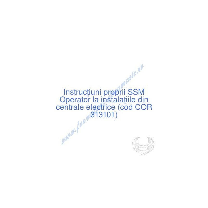 Aceste documente OBLIGATORII pentru ocupantul postului de Operator la instalaţiile din centrale electrice (cod COR 313101), sunt complet întocmite, respectând cerințele Codului muncii actualizat 2023, Legii securității și sănătății în muncă nr. 319/2006 (actualizată 2023), H.G. 1425/2006 (actualizată 2023) și răspund tuturor cerințelor standardelor de calitate referitoare la management (ISO 9001/ ISO 14001/ ISO 22000/ SR OHSAS 18001:2008/ ISO 45001:2018 etc.). Cuprinsul IPSSM pentru instruirea angajatului pe funcția de Operator la instalaţiile din centrale electrice :
