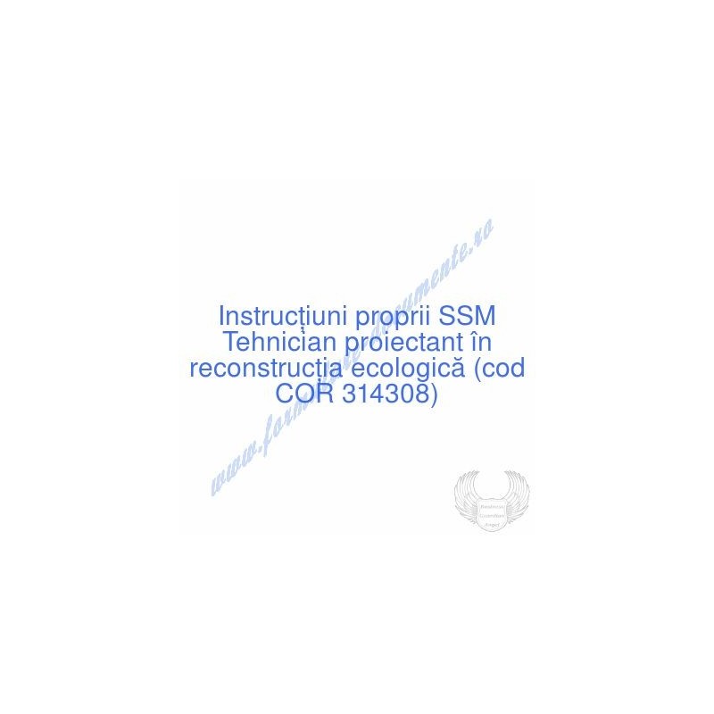 Aceste documente OBLIGATORII pentru ocupantul postului de Tehnician proiectant în reconstrucţia ecologică (cod COR 314308), sunt complet întocmite, respectând cerințele Codului muncii actualizat 2023, Legii securității și sănătății în muncă nr. 319/2006 (actualizată 2023), H.G. 1425/2006 (actualizată 2023) și răspund tuturor cerințelor standardelor de calitate referitoare la management (ISO 9001/ ISO 14001/ ISO 22000/ SR OHSAS 18001:2008/ ISO 45001:2018 etc.). Cuprinsul IPSSM pentru instruirea angajatului pe funcția de Tehnician proiectant în reconstrucţia ecologică :