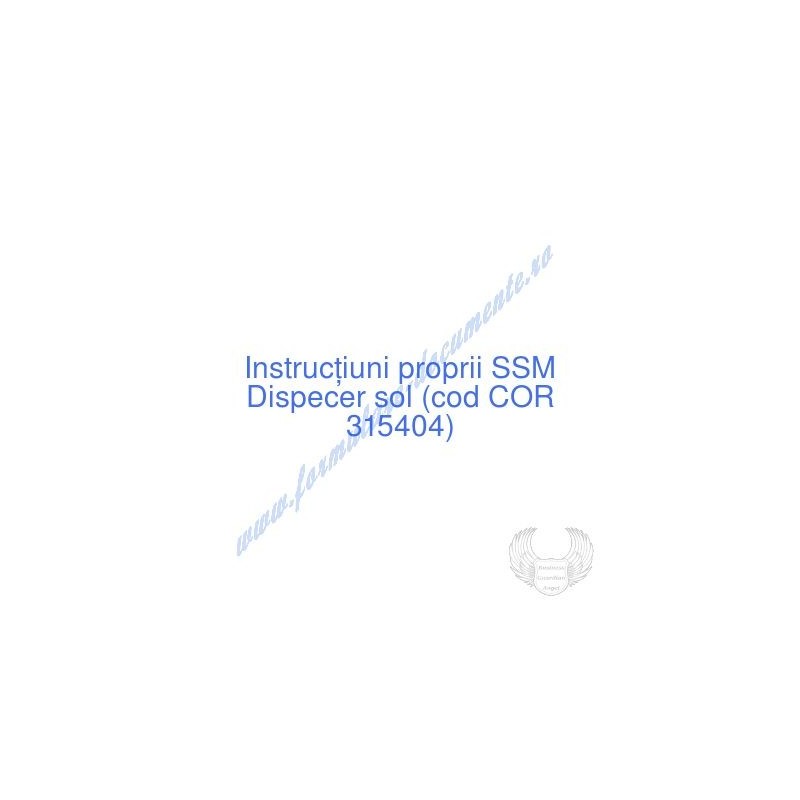 Aceste documente OBLIGATORII pentru ocupantul postului de Dispecer sol (cod COR 315404), sunt complet întocmite, respectând cerințele Codului muncii actualizat 2023, Legii securității și sănătății în muncă nr. 319/2006 (actualizată 2023), H.G. 1425/2006 (actualizată 2023) și răspund tuturor cerințelor standardelor de calitate referitoare la management (ISO 9001/ ISO 14001/ ISO 22000/ SR OHSAS 18001:2008/ ISO 45001:2018 etc.). Cuprinsul IPSSM pentru instruirea angajatului pe funcția de Dispecer sol :