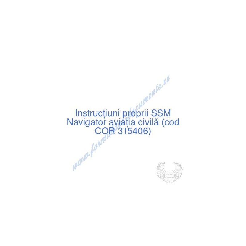 Aceste documente OBLIGATORII pentru ocupantul postului de Navigator aviaţia civilă (cod COR 315406), sunt complet întocmite, respectând cerințele Codului muncii actualizat 2023, Legii securității și sănătății în muncă nr. 319/2006 (actualizată 2023), H.G. 1425/2006 (actualizată 2023) și răspund tuturor cerințelor standardelor de calitate referitoare la management (ISO 9001/ ISO 14001/ ISO 22000/ SR OHSAS 18001:2008/ ISO 45001:2018 etc.). Cuprinsul IPSSM pentru instruirea angajatului pe funcția de Navigator aviaţia civilă :
