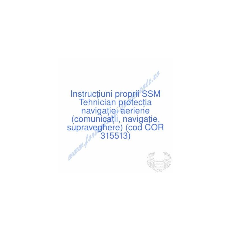 Aceste documente OBLIGATORII pentru ocupantul postului de Tehnician protecţia navigaţiei aeriene (comunicaţii, navigaţie, supraveghere) (cod COR 315513), sunt complet întocmite, respectând cerințele Codului muncii actualizat 2023, Legii securității și sănătății în muncă nr. 319/2006 (actualizată 2023), H.G. 1425/2006 (actualizată 2023) și răspund tuturor cerințelor standardelor de calitate referitoare la management (ISO 9001/ ISO 14001/ ISO 22000/ SR OHSAS 18001:2008/ ISO 45001:2018 etc.). Cuprinsul IPSSM pentru instruirea angajatului pe funcția de Tehnician protecţia navigaţiei aeriene (comunicaţii, navigaţie, supraveghere) :