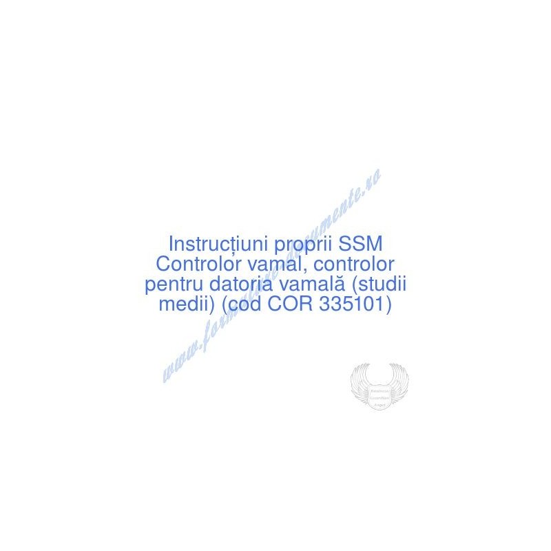 Aceste documente OBLIGATORII pentru ocupantul postului de Controlor vamal, controlor pentru datoria vamală (studii medii) (cod COR 335101), sunt complet întocmite, respectând cerințele Codului muncii actualizat 2023, Legii securității și sănătății în muncă nr. 319/2006 (actualizată 2023), H.G. 1425/2006 (actualizată 2023) și răspund tuturor cerințelor standardelor de calitate referitoare la management (ISO 9001/ ISO 14001/ ISO 22000/ SR OHSAS 18001:2008/ ISO 45001:2018 etc.). Cuprinsul IPSSM pentru instruirea angajatului pe funcția de Controlor vamal, controlor pentru datoria vamală (studii medii) :