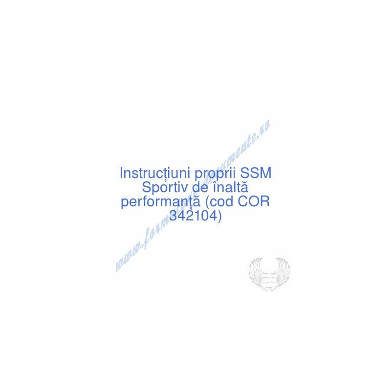Aceste documente OBLIGATORII pentru ocupantul postului de Sportiv de înaltă performanță (cod COR 342104), sunt complet întocmite, respectând cerințele Codului muncii actualizat 2023, Legii securității și sănătății în muncă nr. 319/2006 (actualizată 2023), H.G. 1425/2006 (actualizată 2023) și răspund tuturor cerințelor standardelor de calitate referitoare la management (ISO 9001/ ISO 14001/ ISO 22000/ SR OHSAS 18001:2008/ ISO 45001:2018 etc.). Cuprinsul IPSSM pentru instruirea angajatului pe funcția de Sportiv de înaltă performanță :