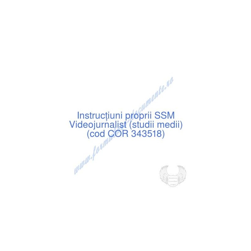 Aceste documente OBLIGATORII pentru ocupantul postului de Videojurnalist (studii medii) (cod COR 343518), sunt complet întocmite, respectând cerințele Codului muncii actualizat 2023, Legii securității și sănătății în muncă nr. 319/2006 (actualizată 2023), H.G. 1425/2006 (actualizată 2023) și răspund tuturor cerințelor standardelor de calitate referitoare la management (ISO 9001/ ISO 14001/ ISO 22000/ SR OHSAS 18001:2008/ ISO 45001:2018 etc.). Cuprinsul IPSSM pentru instruirea angajatului pe funcția de Videojurnalist (studii medii) :