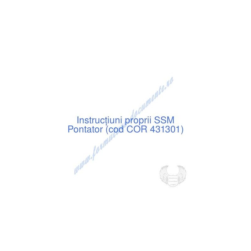 Aceste documente OBLIGATORII pentru ocupantul postului de Pontator (cod COR 431301), sunt complet întocmite, respectând cerințele Codului muncii actualizat 2023, Legii securității și sănătății în muncă nr. 319/2006 (actualizată 2023), H.G. 1425/2006 (actualizată 2023) și răspund tuturor cerințelor standardelor de calitate referitoare la management (ISO 9001/ ISO 14001/ ISO 22000/ SR OHSAS 18001:2008/ ISO 45001:2018 etc.). Cuprinsul IPSSM pentru instruirea angajatului pe funcția de Pontator :