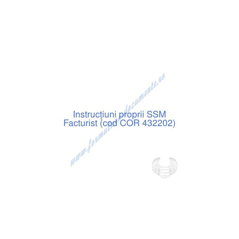 Aceste documente OBLIGATORII pentru ocupantul postului de Facturist (cod COR 432202), sunt complet întocmite, respectând cerințele Codului muncii actualizat 2023, Legii securității și sănătății în muncă nr. 319/2006 (actualizată 2023), H.G. 1425/2006 (actualizată 2023) și răspund tuturor cerințelor standardelor de calitate referitoare la management (ISO 9001/ ISO 14001/ ISO 22000/ SR OHSAS 18001:2008/ ISO 45001:2018 etc.). Cuprinsul IPSSM pentru instruirea angajatului pe funcția de Facturist :