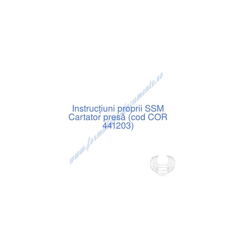 Aceste documente OBLIGATORII pentru ocupantul postului de Cartator presă (cod COR 441203), sunt complet întocmite, respectând cerințele Codului muncii actualizat 2023, Legii securității și sănătății în muncă nr. 319/2006 (actualizată 2023), H.G. 1425/2006 (actualizată 2023) și răspund tuturor cerințelor standardelor de calitate referitoare la management (ISO 9001/ ISO 14001/ ISO 22000/ SR OHSAS 18001:2008/ ISO 45001:2018 etc.). Cuprinsul IPSSM pentru instruirea angajatului pe funcția de Cartator presă :