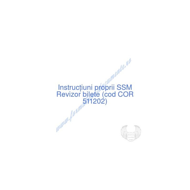 Aceste documente OBLIGATORII pentru ocupantul postului de Revizor bilete (cod COR 511202), sunt complet întocmite, respectând cerințele Codului muncii actualizat 2023, Legii securității și sănătății în muncă nr. 319/2006 (actualizată 2023), H.G. 1425/2006 (actualizată 2023) și răspund tuturor cerințelor standardelor de calitate referitoare la management (ISO 9001/ ISO 14001/ ISO 22000/ SR OHSAS 18001:2008/ ISO 45001:2018 etc.). Cuprinsul IPSSM pentru instruirea angajatului pe funcția de Revizor bilete :
