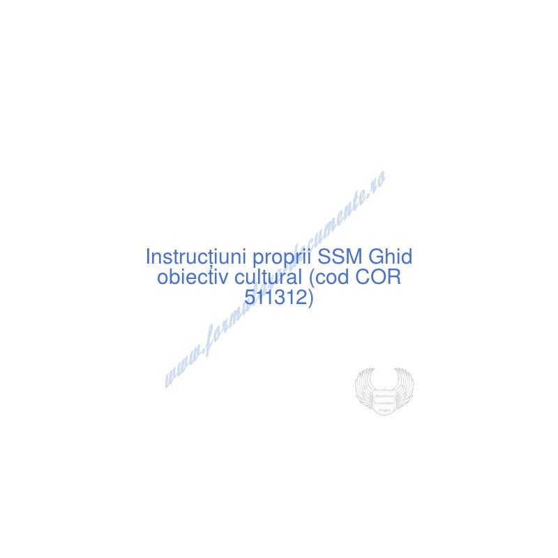 Aceste documente OBLIGATORII pentru ocupantul postului de Ghid obiectiv cultural (cod COR 511312), sunt complet întocmite, respectând cerințele Codului muncii actualizat 2023, Legii securității și sănătății în muncă nr. 319/2006 (actualizată 2023), H.G. 1425/2006 (actualizată 2023) și răspund tuturor cerințelor standardelor de calitate referitoare la management (ISO 9001/ ISO 14001/ ISO 22000/ SR OHSAS 18001:2008/ ISO 45001:2018 etc.). Cuprinsul IPSSM pentru instruirea angajatului pe funcția de Ghid obiectiv cultural :
