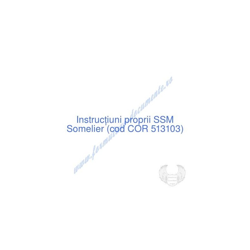 Aceste documente OBLIGATORII pentru ocupantul postului de Somelier (cod COR 513103), sunt complet întocmite, respectând cerințele Codului muncii actualizat 2023, Legii securității și sănătății în muncă nr. 319/2006 (actualizată 2023), H.G. 1425/2006 (actualizată 2023) și răspund tuturor cerințelor standardelor de calitate referitoare la management (ISO 9001/ ISO 14001/ ISO 22000/ SR OHSAS 18001:2008/ ISO 45001:2018 etc.). Cuprinsul IPSSM pentru instruirea angajatului pe funcția de Somelier :