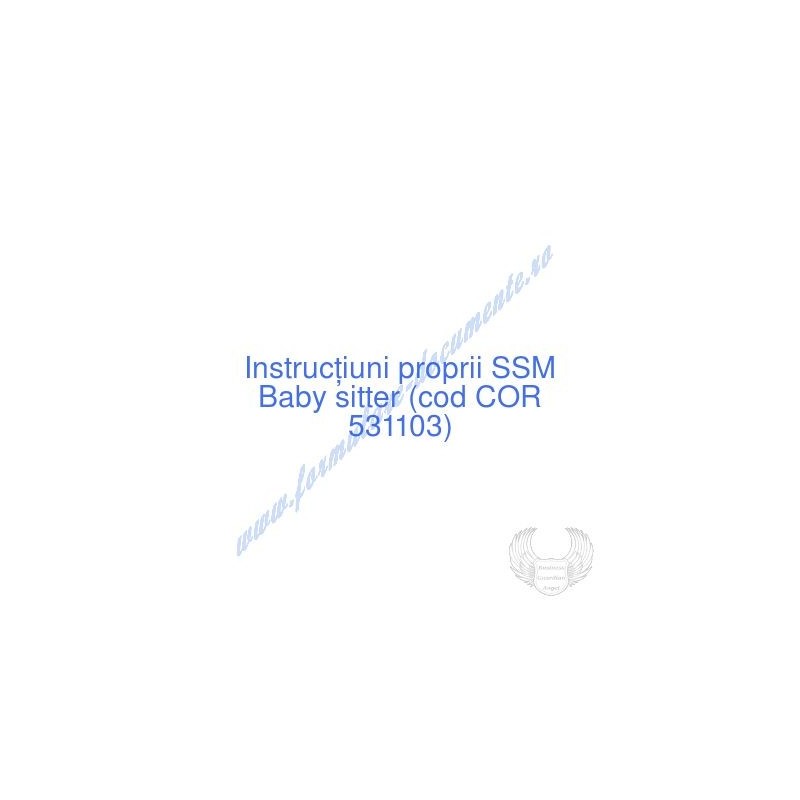 Aceste documente OBLIGATORII pentru ocupantul postului de Baby sitter (cod COR 531103), sunt complet întocmite, respectând cerințele Codului muncii actualizat 2023, Legii securității și sănătății în muncă nr. 319/2006 (actualizată 2023), H.G. 1425/2006 (actualizată 2023) și răspund tuturor cerințelor standardelor de calitate referitoare la management (ISO 9001/ ISO 14001/ ISO 22000/ SR OHSAS 18001:2008/ ISO 45001:2018 etc.). Cuprinsul IPSSM pentru instruirea angajatului pe funcția de Baby sitter :