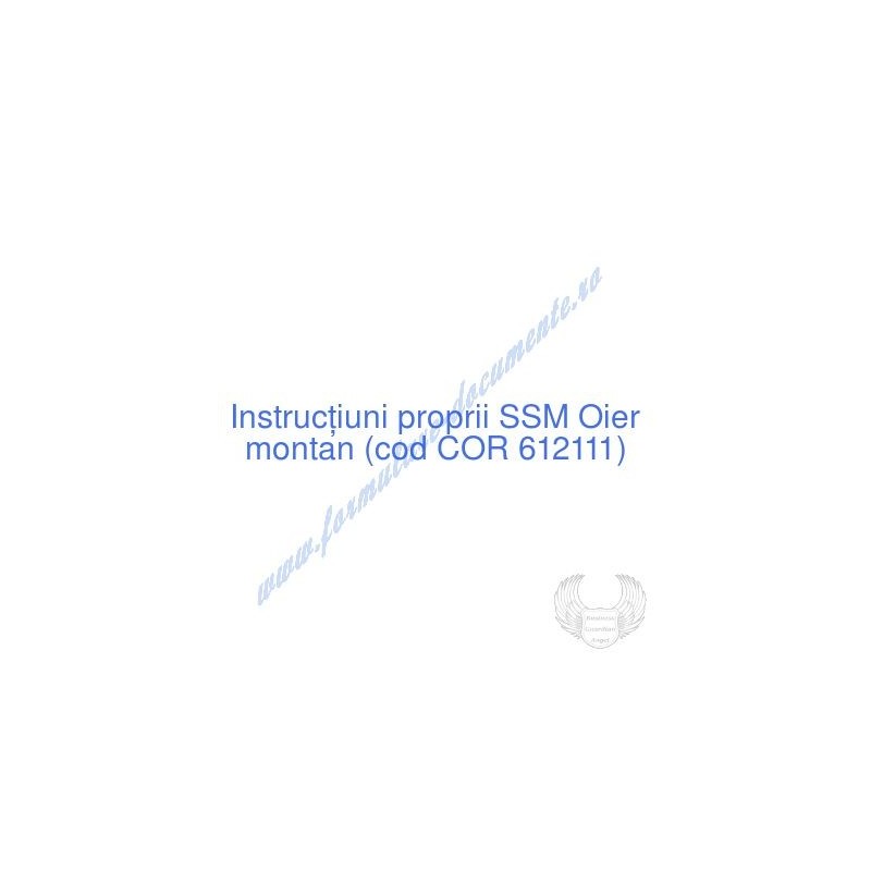 Aceste documente OBLIGATORII pentru ocupantul postului de Oier montan (cod COR 612111), sunt complet întocmite, respectând cerințele Codului muncii actualizat 2023, Legii securității și sănătății în muncă nr. 319/2006 (actualizată 2023), H.G. 1425/2006 (actualizată 2023) și răspund tuturor cerințelor standardelor de calitate referitoare la management (ISO 9001/ ISO 14001/ ISO 22000/ SR OHSAS 18001:2008/ ISO 45001:2018 etc.). Cuprinsul IPSSM pentru instruirea angajatului pe funcția de Oier montan :
