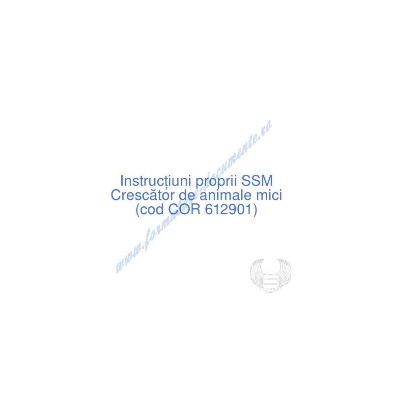 Aceste documente OBLIGATORII pentru ocupantul postului de Crescător de animale mici (cod COR 612901), sunt complet întocmite, respectând cerințele Codului muncii actualizat 2023, Legii securității și sănătății în muncă nr. 319/2006 (actualizată 2023), H.G. 1425/2006 (actualizată 2023) și răspund tuturor cerințelor standardelor de calitate referitoare la management (ISO 9001/ ISO 14001/ ISO 22000/ SR OHSAS 18001:2008/ ISO 45001:2018 etc.). Cuprinsul IPSSM pentru instruirea angajatului pe funcția de Crescător de animale mici :