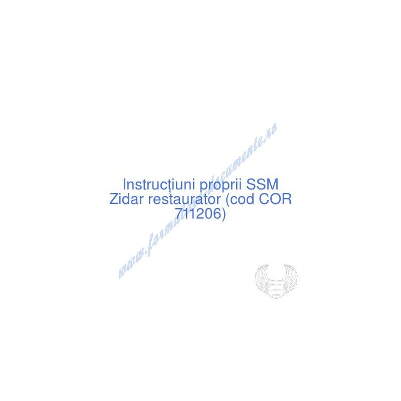 Aceste documente OBLIGATORII pentru ocupantul postului de Zidar restaurator (cod COR 711206), sunt complet întocmite, respectând cerințele Codului muncii actualizat 2023, Legii securității și sănătății în muncă nr. 319/2006 (actualizată 2023), H.G. 1425/2006 (actualizată 2023) și răspund tuturor cerințelor standardelor de calitate referitoare la management (ISO 9001/ ISO 14001/ ISO 22000/ SR OHSAS 18001:2008/ ISO 45001:2018 etc.). Cuprinsul IPSSM pentru instruirea angajatului pe funcția de Zidar restaurator :