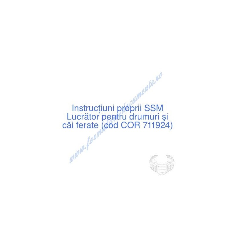 Aceste documente OBLIGATORII pentru ocupantul postului de Lucrător pentru drumuri şi căi ferate (cod COR 711924), sunt complet întocmite, respectând cerințele Codului muncii actualizat 2023, Legii securității și sănătății în muncă nr. 319/2006 (actualizată 2023), H.G. 1425/2006 (actualizată 2023) și răspund tuturor cerințelor standardelor de calitate referitoare la management (ISO 9001/ ISO 14001/ ISO 22000/ SR OHSAS 18001:2008/ ISO 45001:2018 etc.). Cuprinsul IPSSM pentru instruirea angajatului pe funcția de Lucrător pentru drumuri şi căi ferate :